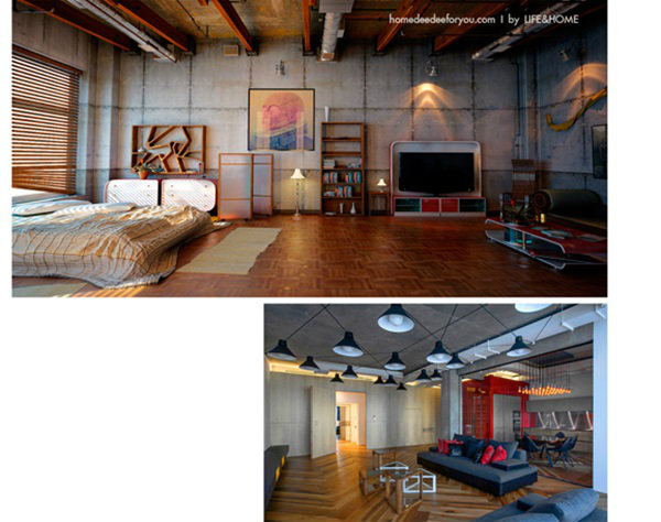1. ผนังปูนเปลือยแบบฉาบเรียบและขัดมัน