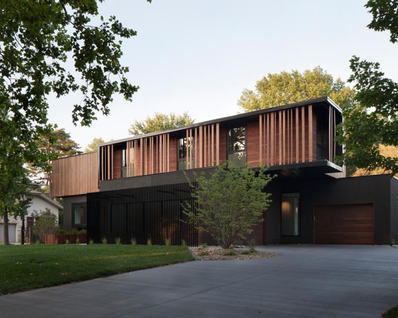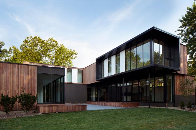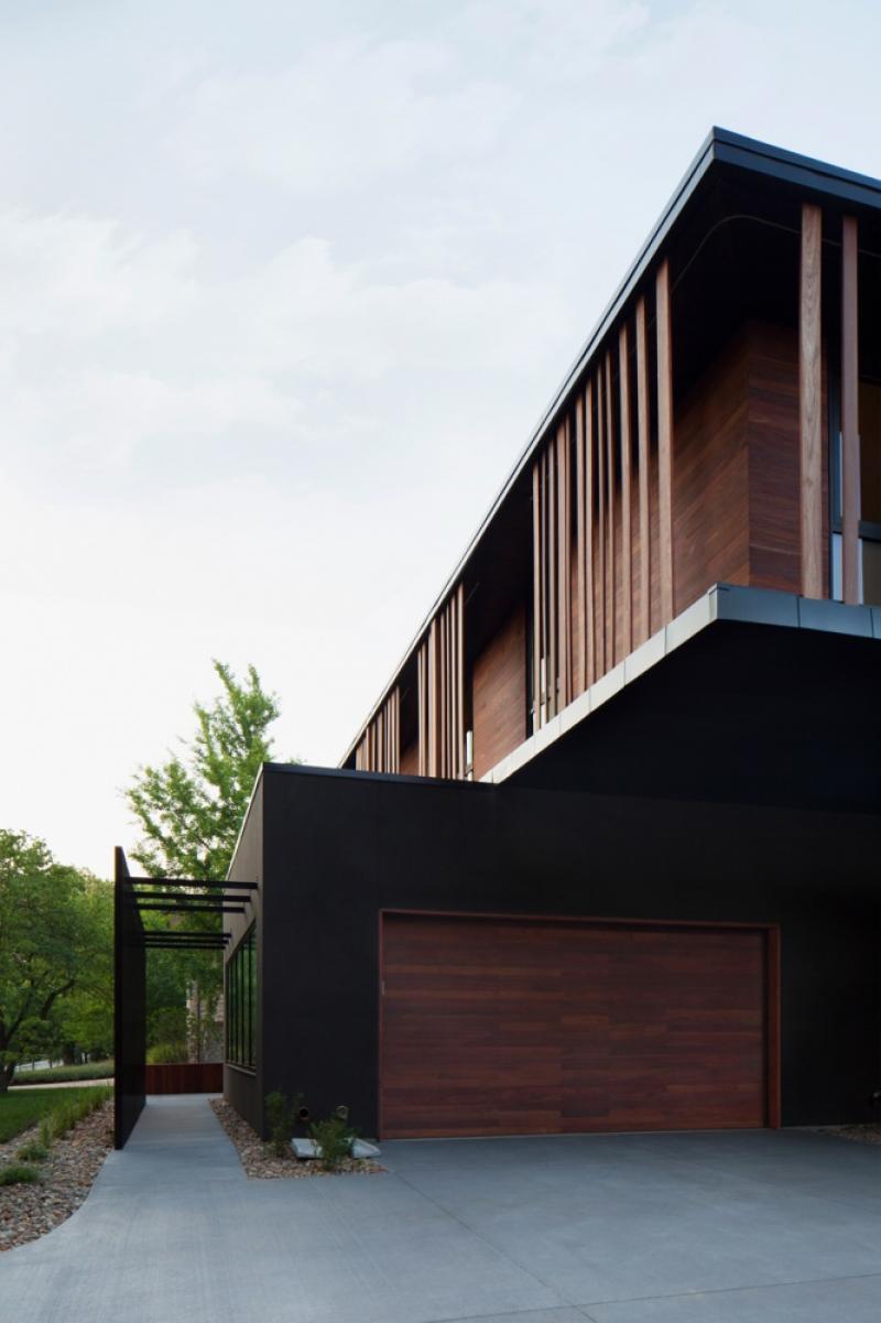 พื้นที่ใช้สอยกว่า 6,400 ตารางฟุต แบ่งออกเป็น 3 ห้องนอนกับอีก 4 ห้องน้ำ โดยออกแบบในสไตล์โมเดิร์นทรงกล่องเหล็กสีดำแล้วตกแต่งปิดผิวบางส่วนด้วยไม้ โครงสร้าง L-shape โอบสนามหญ้าสีเขียวด้านหน้าเอาไว้ และจากภาพที่เห็นก็บอกได้คำเดียวว่าบ้านหลังนี้เพิ่งสร้างเสร็จสดๆ ร้อนๆ แบบยังไม่ได้ย้ายเข้าไปอยู่ และยังไม่มีเฟอร์นิเจอร์แม้แต่ชิ้นเดียว ประมาณว่าพอสีแห้งและเพิ่งตกแต่งภายในกับทำความสะอาดก็บันทึกภาพเก็บเอาไว้ก่อน