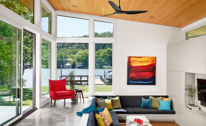 หน้าแรก ห้องนั่งเล่น บ้านชั้นเดียวสวย ริมทะเลสาบ กับสถาปัตยกรรรมดั้งเดิมในแบบ dogtrot style