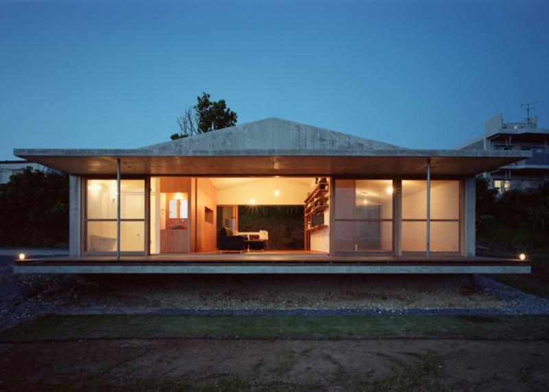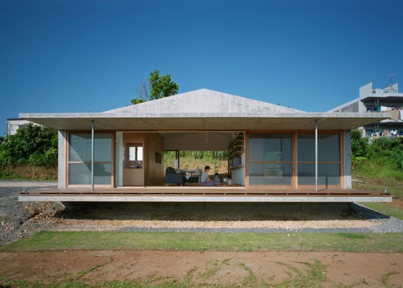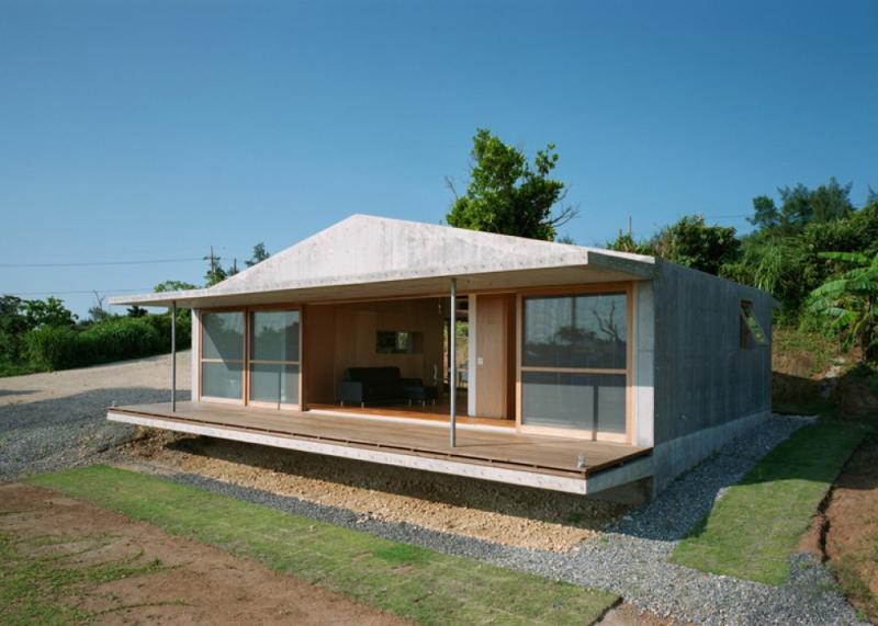 แบบบ้านคอนกรีตหลังนี้ตั้งอยู่บนเกาะที่ห่างไกลของญี่ปุ่นใน อิริโอะโมเตะ เกาะหนึ่งของจังหวัดโอกินาว่าที่มีความหลากหลายทั้งพื้นที่ป่าฝนและพื้นที่บึง ซึ่งตัวบ้านมาพร้อมขนาดพื้นที่ใช้สอย 70 ตารางเมตร เป็นผลงานการออกแบบล่าสุดของ Harunatsu Archi ด้วยแนวคิดง่ายๆ คือการสร้างบ้านแบบยั่งยืนให้สามารถปรับเข้าได้กับสภาพแวดล้อมพายุฝนหนักๆ ได้แม้เป็นพายุไต้ฝุ่
