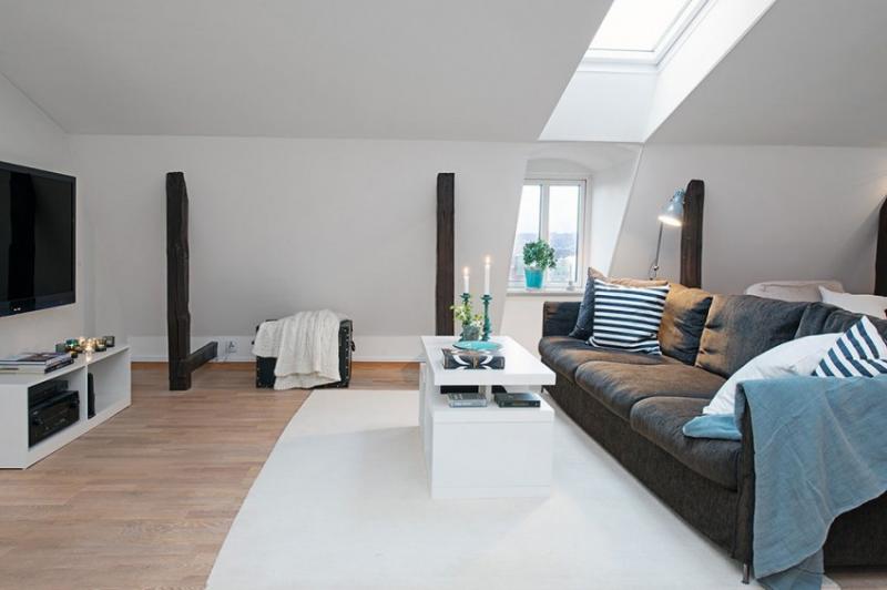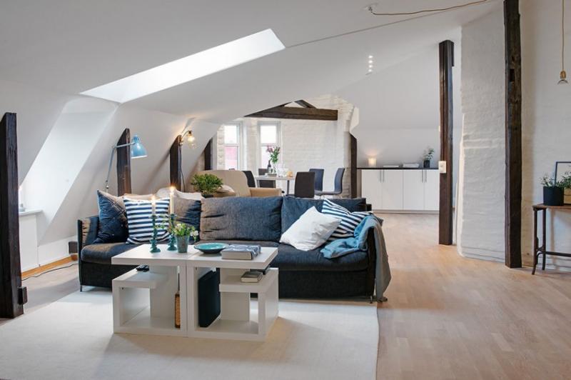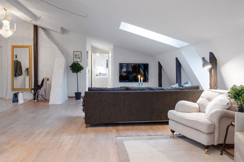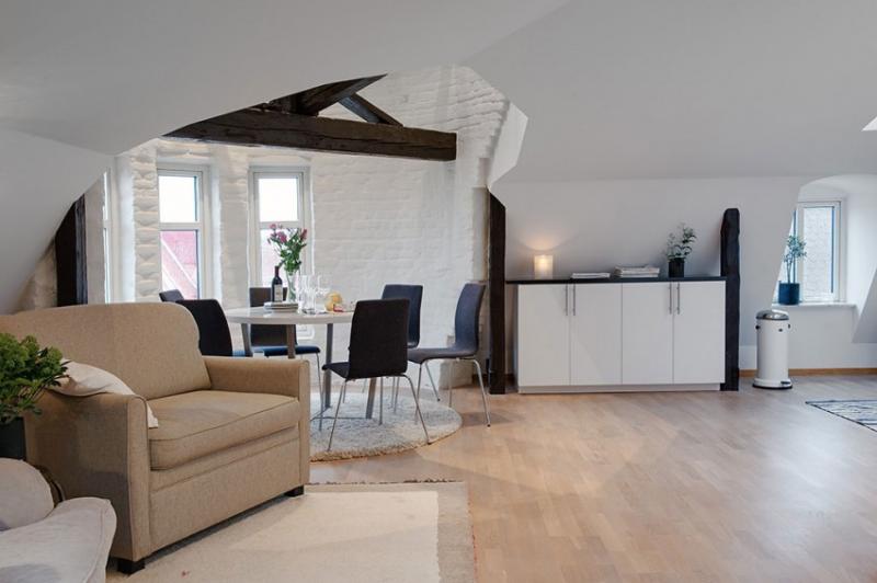 อพาร์ทเม้นสแกนดิเนเวียนแห่งนี้มีความซับซ้อนในการออกแบบที่เราพบหลงใหล ค้นพบโดย Freshome บน Alvhem นายหน้าและตกแต่งภายในบ้านนี้น่ารักเป็นงานชิ้นเอกในแง่ของการใช้วัสดุและรูปแบบ Allthough ภาพด้านล่างดูเหมือนจะแสดงให้เห็นถึงพื้นที่ใช้สอยนี้ประกอบด้วยสองห้องนอนและห้องครัวที่เป็นแบบบูรณาการนั่งเล่นขนาดใหญ่ แสงธรรมชาติที่เข้ามาในอพาร์ทเมนจากหน้าต่างต่างๆเจาะผนังเอียงซึ่งทำให้สถานที่ที่อบอุ่นโดยเฉพาะอย่างยิ่งมุมที่น่าสนใจที่สุดของอพาร์ทเมนเป็นพื้นที่รับประทานอาหารที่ตั้งอยู่จะมีระเบียงล้อม