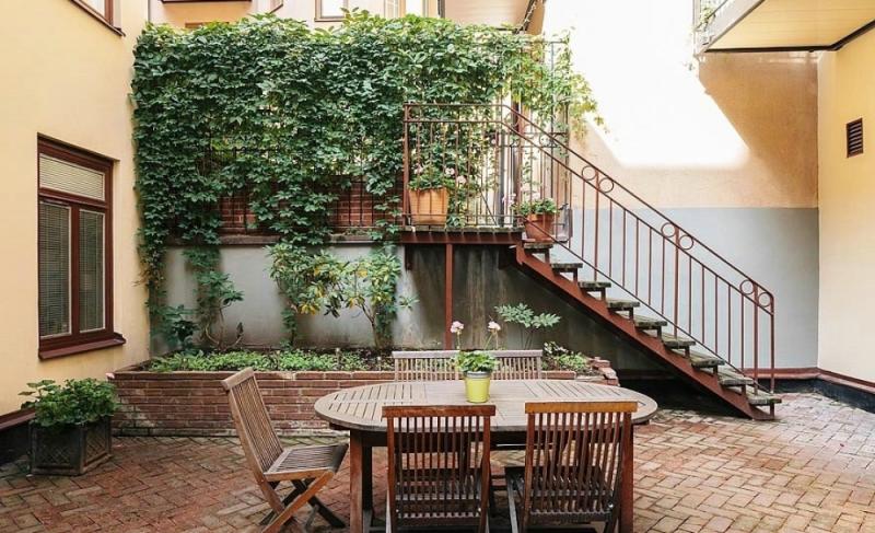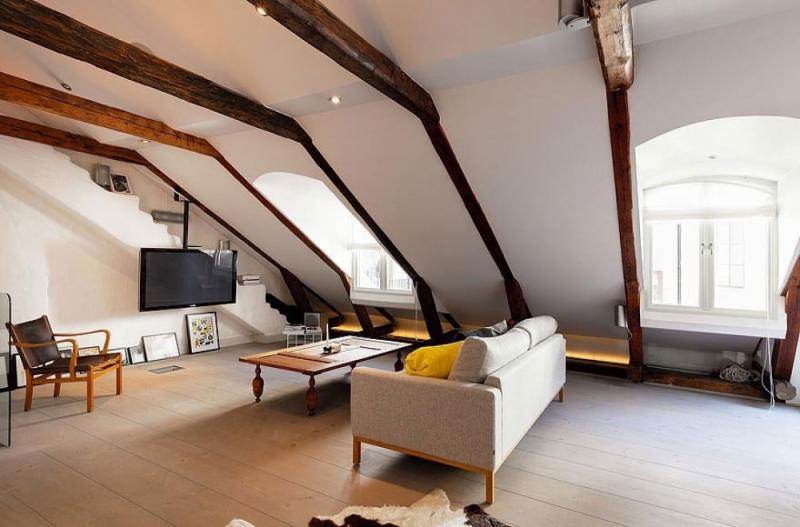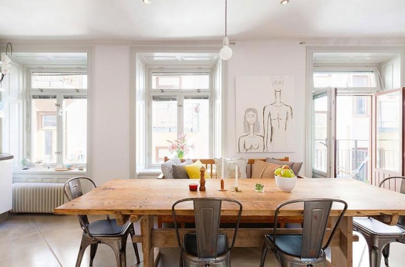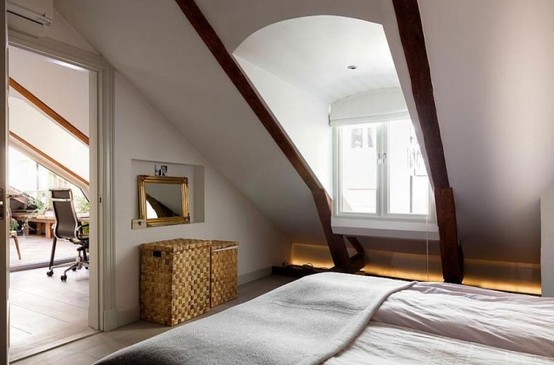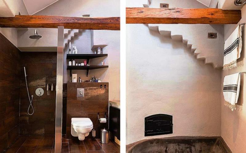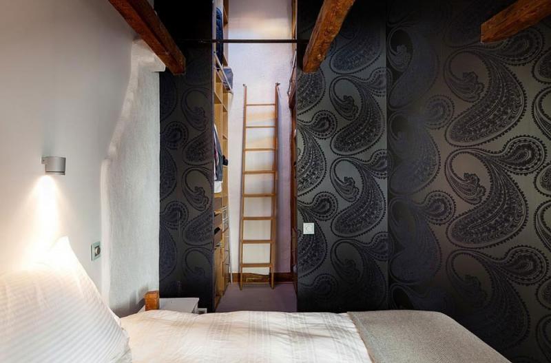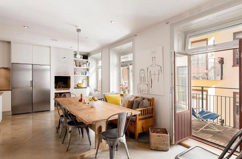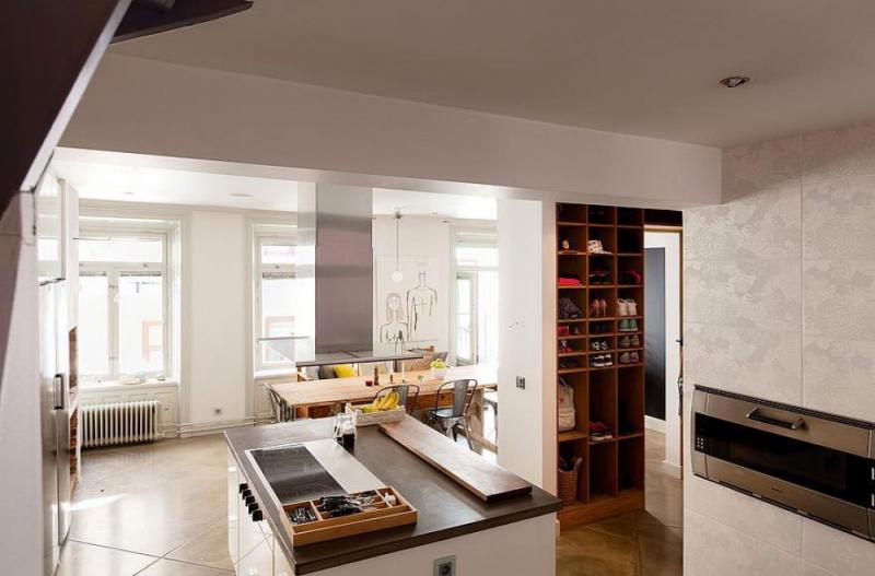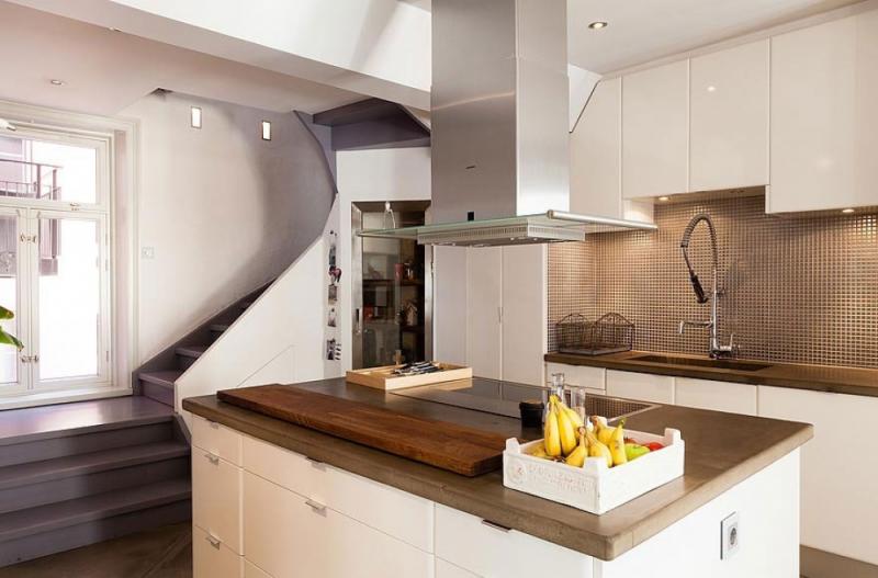 มาดูกันว่าอพาร์ทเม้นท์ ที่มีพื้นที่ใช้สอย 1,571 ตารางฟุตมีอะไรบ้าง เริ่มชั้นล่างสุดยกพื้นที่ให้กับห้องครัวและห้องรับประทานอาหารขนาดใหญ่ รวมไปถึงเตาผิง ตู้เย็นฝังไปเป็นระนาบเดียวกับตู้บิลท์อินอื่นๆ ที่ไล่ระดับความสูงไปอย่างสวยงาม