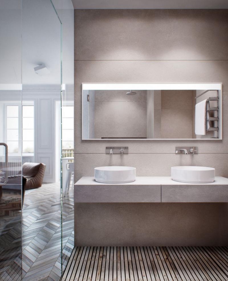 We stumbled across this modern apartment visualized by Russian studio INT2 Architecture and were pleasantly surprised by its originality. Simple elegance is displayed throughout the interiors of this home, exuded by an interesting array of materials and enhanced by color contrasts. The stage was set for contemporary artistic additions, which add a slightly pedantic effect. White walls contribute to an overall fresh and clean look, while large windows allow an abundance of natural light inside all the rooms of the loft