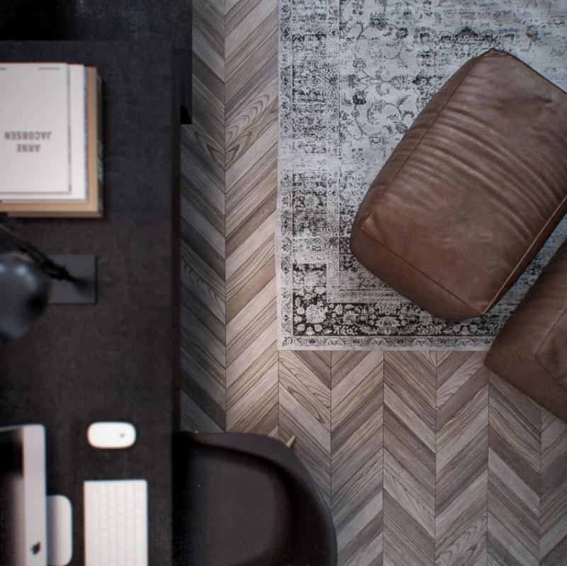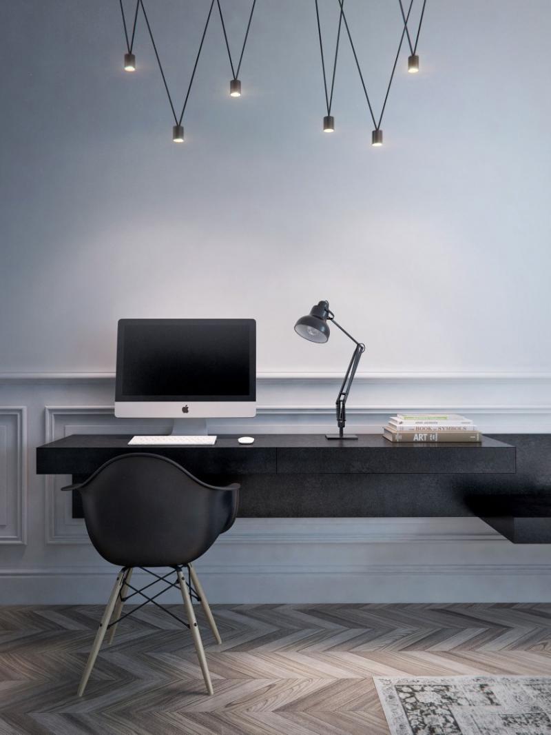 Each design element has its unique and powerful personality and how the studio planned this harmonious mix is inspiring. A vintage feel is subtly released in the living area, due to the leather armchairs and ottoman. This is contrasted by the modernist fireplace, neighboring desk and minimalist lighting additions above. We love how the designers maintained the same style and color palette in the bedroom, with parquet flooring delivering a warm atmosphere. Enjoy the photos and let us know what other details you consider worth emphasizing on!